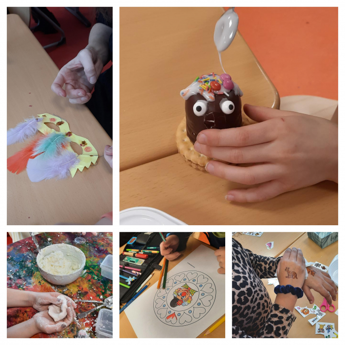 Außerdem haben sie das Verbinden von Verletzungen ausprobiert und sich gegenseitig mit einem Stethoskop abgehört. An Schluss haben sie, wie richtige Rettungssanitäter*innen, versucht einen Pantienten (ein kleiner Kluscheltiger) sicher und schnell zu tragen.