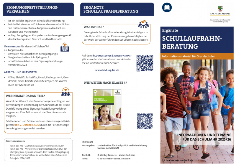 Liebe Eltern, seit dem Schuljahr 2024/25 gibt es in Sachsen-Anhalt die Verpflichtung zu ergänzenden Schullaufbahnberatungen. Alle Informationen auf unten stehendem Bild oder in der .pdf.
